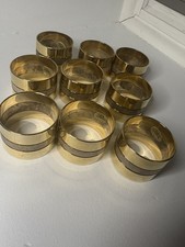 Vintage Two Tone Silver & Gold Metal Napkin Rings Set of 9 MCM made in Hong Kong