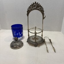 Vintage Victorian Style Cobalt Blue Glass Pickle Castor