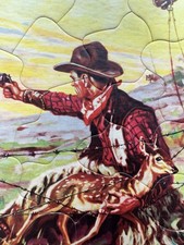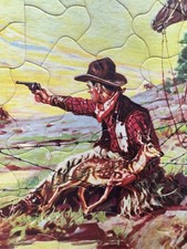 Vintage Walzer Tray Puzzle Cowboy Protecting A Fawn With Weapon Drawn Rare