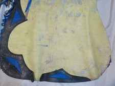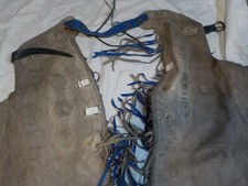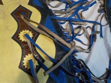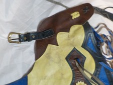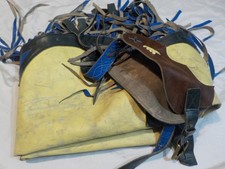 Vintage Western Rodeo Bull Riding Chaps Leather Fringe Cowboy Yellow Blue