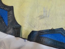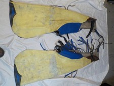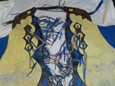 Be the first to review “Vintage Western Rodeo Bull Riding Chaps Leather Fringe Cowboy Yellow Blue”