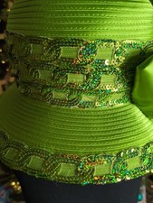 Vintage Whittall & Shon Celery Green, Church Hat, Sequin And Bow Detail