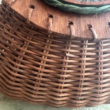 Vintage Wicker Fly Fishing Creel Trout Basket Woven Wood Plaque With Hook Motif