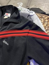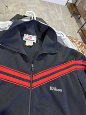 Be the first to review “Vintage Wilson Track Jacket Mens L Black Red Stripe Full Zip Tennis Retro Gym” Cancel reply