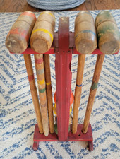 Vintage Wood Croquet Set with Stand – 4 Player – 1950s Style – Great Character!