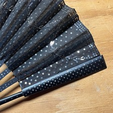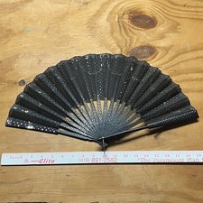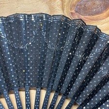 Vintage Wooden & Lace Hand Fan Fold Up 1920-1930s Sequine – Antique – RARE