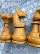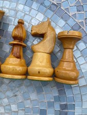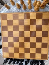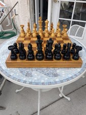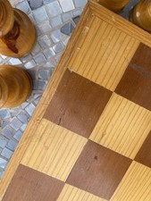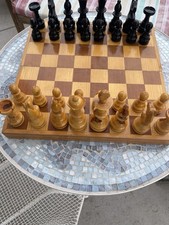 Vintage wooden chess set , hand carved , King 6 inches folding board