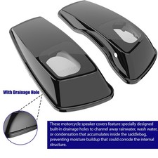 Vivid Black Saddlebag Speaker Lids, Motorcycle Stretched Bags Lid 6×9 W/Drainage