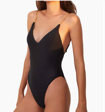 Be the first to review “Vix Paula Hermanny Scoop Neck Chain Strap Solid Melody One-Piece Swimsuit Size S” Cancel reply