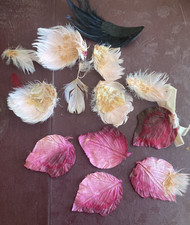 VTG 1940s Mixed Lot Pink Velvet Leaves Feathers Millinery Hat Embellishments