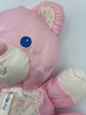 VTG 1994 Fisher Price Puffalump 9” Baby Pink Nylon Teddy Bear Rattle Lovey