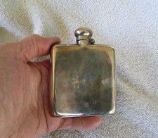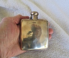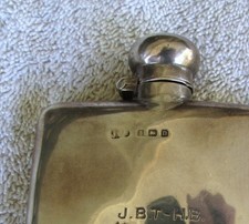 Vtg 4″x3″ 85 grams Sterling Silver Hip Whiskey Flask Engraved+Hallmark markings