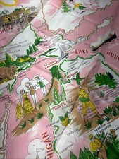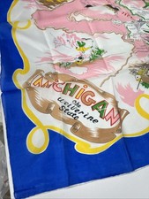 VTG 50’s Michigan The Wolverine State Silk Scarf With Landmarks