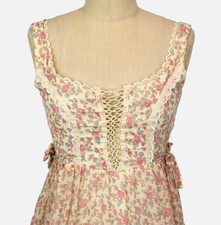 Vtg 70s Prairie Corset Lace Maxi Dress XS Floral Calico Gunne-Style