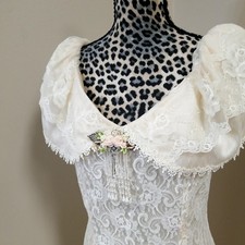 VTG 70s Susan Lanes Country Elegance Cream Lace Off Shoulder Wedding Dress 12
