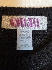 Be the first to review “VTG Amanda Smith Womens Silk Angora Lambswool Sweater Black Gold Beaded Siz M”