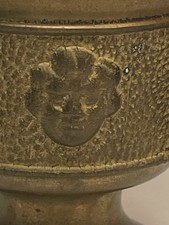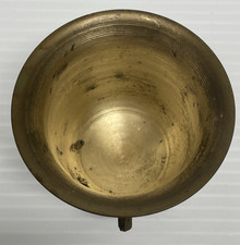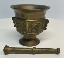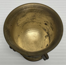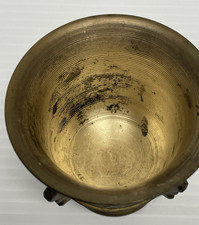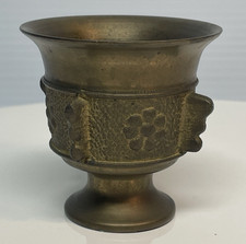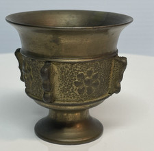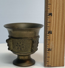 Vtg Antique Solid Brass Ornate Flower Faces Urn Mortar Pestle Grinder 2.5″ Tall