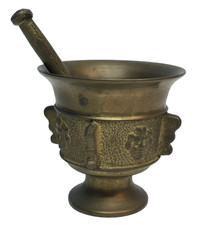 Be the first to review “Vtg Antique Solid Brass Ornate Flower Faces Urn Mortar Pestle Grinder 2.5″ Tall” Cancel reply