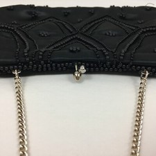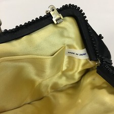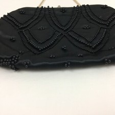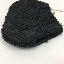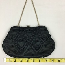 VTG Beaded Satin Black Kiss Clasp Handbag Clutch Purse Japan