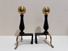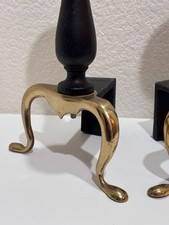 Vtg Brass & Black Andirons Fireplace matching Set Mid Century Style Pair