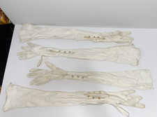 VTG BUNDLE LOT 5 LONG GLOVES UNLINED KID LEATHER OPERA PEARL BUTTONS FORMAL GALA