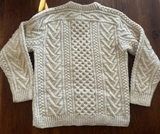 VTG HANDMADE KNIT WOOL IRISH ARAN STYLE WOOL Fisherman’s SWEATER SM M