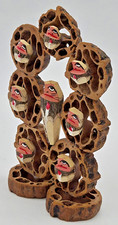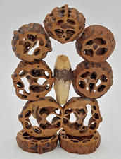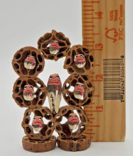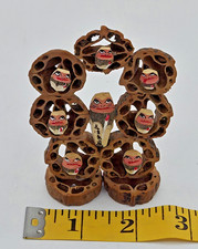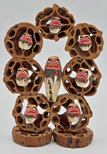 VTG Japanese Daruma Handmade Folk Art CARVED FROM NUTS Unique w/ Box *FREE SHIP*