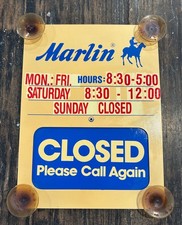 Vtg Marlin Dealer Sign Open Close Gunsmith Gun Repair Hunting Advertising