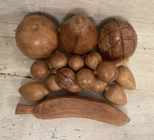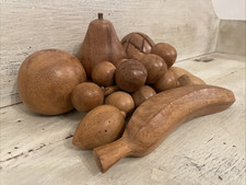 Vtg MCM 8 pc Hand Carved Wooden Fruit Vegetables Grapes Apple Pear Banana Nuts