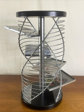 VTG Metal Spiral Spinning 42 CDs Rack Round Black Silver Retro Spins Free