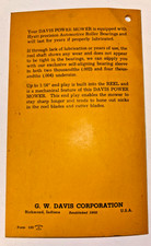 Vtg RARE G.W. Davis Power Lawn Mower Instruction 1950s Pamphlet Manual Ephemera