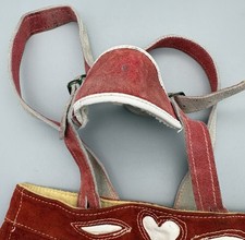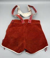 Vtg Red Suede Leather Lederhosen Oktoberfest German Shorts Youth Heart 20” Waist