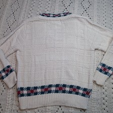Vtg Shenandoah Knit Sweater Womens S USA Made Cottage Plaid Cream Winter Cozy 3D