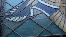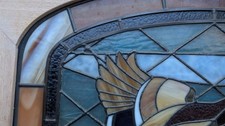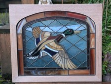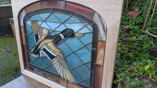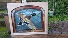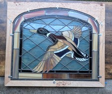 VTG Stained Glass Art Mallard Duck Window Panel 25″X29″ Frame Mounted *READ!