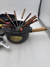 Vtg Staub Cast Iron Fondue Set Black Model #44 Complete Orig. Box La Fonte RARE