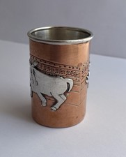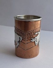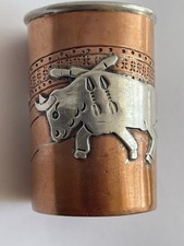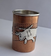 VTG TAXCO MEXICO VICTORIA ANA NUNEZ BRILANTI SILVER COPPER SHOT GLASS BULL