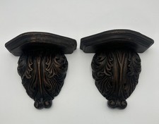 VTG Wood Hand Carved Corbel Decorative Wall Bracket Shelf Pair Beautiful Large