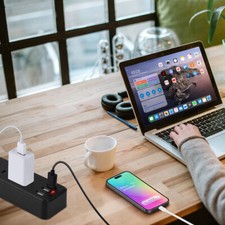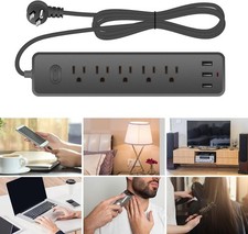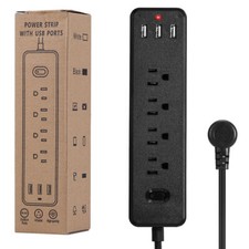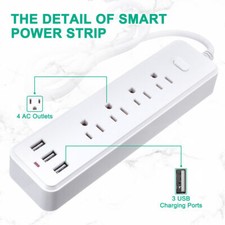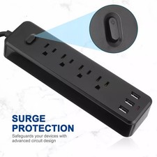Wall Mountable USB Surge Protector Power Strip with 3 USB Ports & 4 Outlet Plugs