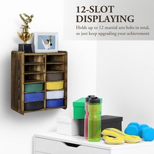 Wall Mounted Brown Wood Display Martial Arts Belt Holder with Top Storage Shelf