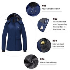 Wantdo Women’s Ski Jacket Waterproof Winter Coat Windproof Warm Fleece Raincoat