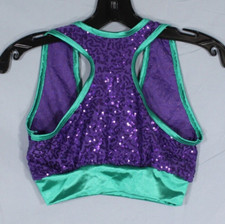 WEISSMAN 6844 V-Neck Bra Crop Top PURPLE SEQUIN Green Trim RACERBACK MC M CHILD