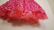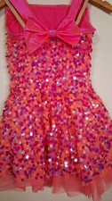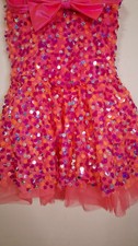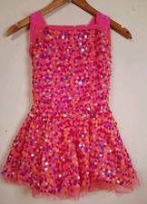 Weissman Dance Costume Pink Orange Neon Sequin 9189 LC Child Bow Rhinestones