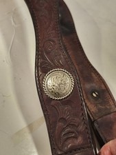 WESTERN VINTAGE LEATHER BREAST COLLAR with SILVER MEXICAN CONCHOS