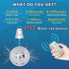 Wind Spinner Motor, 1-30 RPM Disco Ball Motor Battery Operated with Remote, Timi