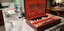 Be the first to review “WM ROGERS SECTIONAL 8 PLACE SETTING (65 pcs) FLATWARE SET w/WOODEN CASE & LEGS” Cancel reply