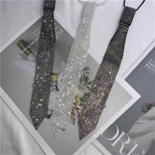 Women Adjustable Rhinestone Ties Necktie Crystal Necklace Shirt Accessories