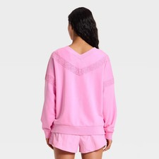 Women’s Crochet Trim V-Neck Sweatshirt – JoyLab Pink XS