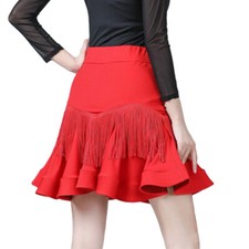 Women’s Latin Dance Skirt Tango Rumba Tassels Ruffle Ballroom Dance Costumes