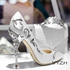 Womens Metal Stilettos High Heels Elegant Pumps Wedding Party Stage Shoes A