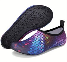 Womens QuickDry Slip on Barefoot Water Shoes Size 36-37 Multicolor Square Design
